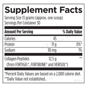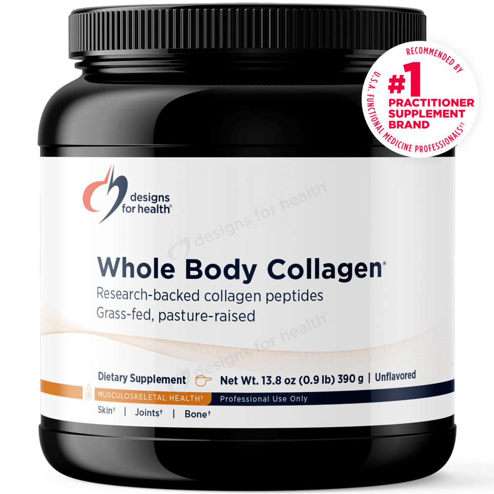 Whole Body Collagen contains a unique blend of three patented collagen peptides supported by clinical research showing their efficacy for supporting collagen production, bone strength, joint health and integrity, skin elasticity and more. Collagen is a special type of protein that accounts for as much as 30% of the body’s total protein. In particular, it’s a primary structural component of connective tissue. The amino acid composition of dietary collagens are very similar to those in human collagens, making dietary collagen peptides ideal for supporting normal body collagen turnover and renewal. Many individuals—the elderly in particular—do not consume adequate protein. Even among those with a higher protein intake, the richest sources of collagen—animal skins, bone broth, and tendons — are not typically part of the modern Western diet. Whole Body Collagen can be incorporated into shakes, smoothies, and other foods and beverages, making it a convenient way to ensure adequate intake of collagen’s unique amino acids.